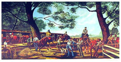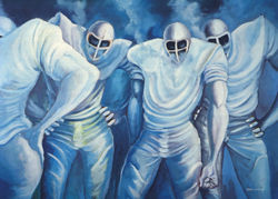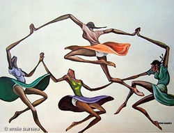 ![]() The Art of Ernie BarnesErnest “Ernie” Eugene Barnes, Jr. (July 15, 1938 – April 27, 2009) was an African-American painter, well known for his unique style of elongation and movement. He was also a professional football player, actor and author. | ![]() Ernie Barnes' involvement with art began at an early age, like most gifted adult artists. However, when he reached high school his creative endeavors were temporarily detoured in his determination to become a successful athlete. In part this was a response to the demands of peer pressure which can be so strong at that age. He graduated from his high school a hero and star football player, and with 26 full athletic scholarships to choose from. He chose North Carolina Central University | ![]() n part this was a response to the demands of peer pressure which can be so strong at that age. He graduated from his high school a hero and star football player, and with 26 full athletic scholarships to choose from. He chose North Carolina Central University and a major in art. After college he continued in an illustrious professional athletic career, but never let his love for football overshadow his love for art. Football gave him an enormous satisfaction of achievement. | ![]() Art, however, allowed him the privilege to interpret for the public his concepts of the relationship between art and life. In 1966 Ernie Barnes retired from football to commit himself to his art. His athletic career made a special contribution to his sensibility and his art, and he often weds physical with artistic expression. Many of his subjects are satirical and he uses exaggeration, and even caricature, to enhance their mood, humor and physical vitality. |